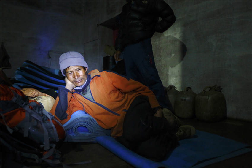 | Ein Tr?ger ruht sich am 1. Mai 2014 in einem Restaurant in Solukhumbu aus. |