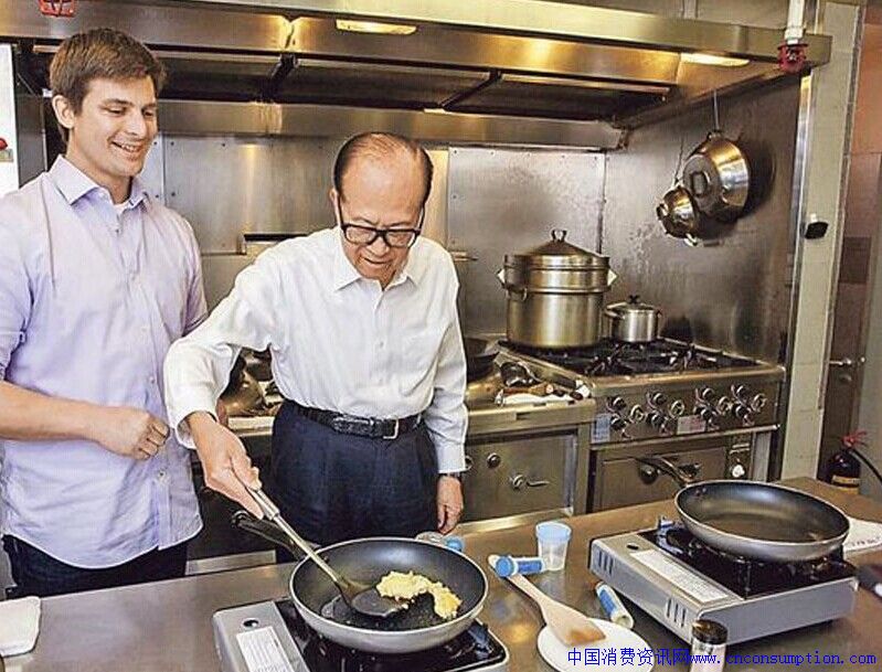 | Li Ka-Shing kocht mit dem künstlichen Ei. |
