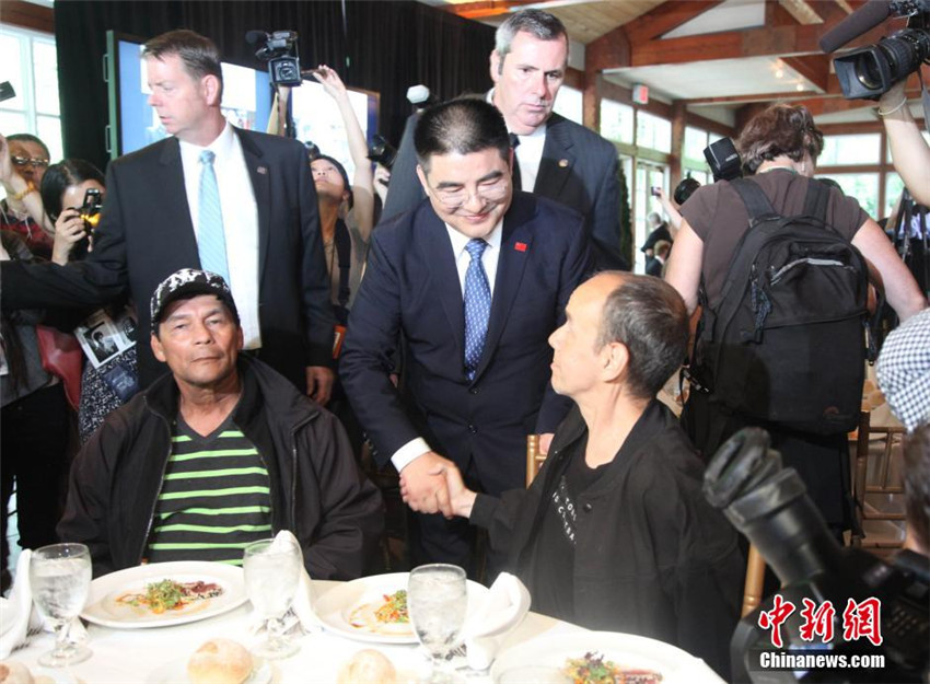 | Chen unterh?lt sich mit einem Obdachlosen. |