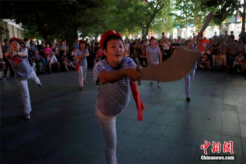 | Auf dem Platz vor der ?Raffles City“ in Beijing führen einige Frauen und M?nner mittleren Alters jeden Tag einen Tanz auf, der an den anti-japanischen Krieg erinnert. |