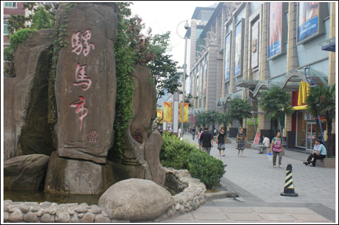 Entlang der Pferdemarkt-Stra?e in Xi’an wurde früher mit Pferden gehandelt. Das ist auch der Grund, warum die Stra?e ?Pferdemarkt“ genannt wird. Heute steht hier ein Shopping-Zentrum. Neben Kaufh?usern, Restaurants und Hotels gibt es auch noch Kinos, Theater und Museen.