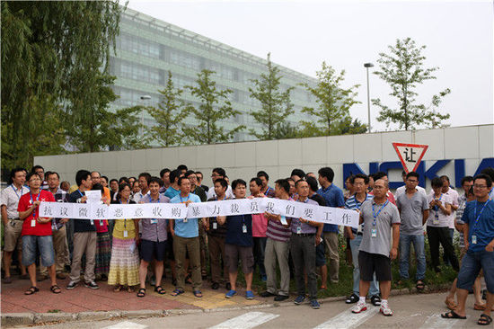 Vor etwa zwei Wochen hat Microsoft China die Nokia-Angestellten in einer offiziellen E-Mail über das ?N+2“ Kompensationspaket für gekündigte Mitarbeiter informiert. ?N“ steht für die Arbeitsjahre in der Firma, ?2“ bedeutet 2 Monate. Gemeint ist ein zweimonatiges Einkommen als Extra-Entsch?digung. Aus Unzufriedenheit über das ?2“ versammelten sich kurz darauf die Mitarbeiter der Forschungs- und Entwicklungsabteilung von Nokia Beijing.