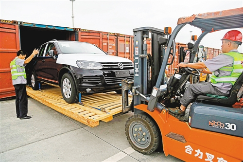 Die ersten 80 Autos aus Deutschland sind am Samstag im Bahnhof von Tuanjie au?erhalb von Chongqing eingetroffen. Die Fahrzeuge wurden im Rahmen des Verteilsystems ?1+N“ mit der Bahn von Europa nach China transportiert. Das Angebot soll weiter ausgebaut werden.