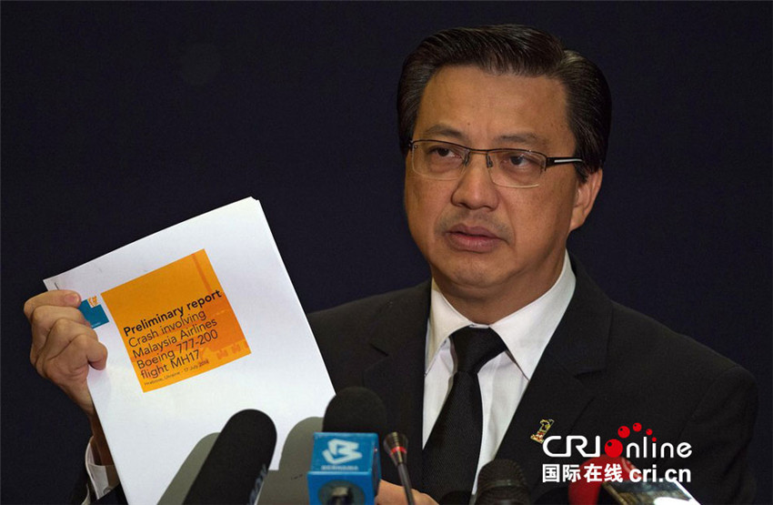 | Der malaysische Verkehrsminister Liow Tiong Lai ver?ffentlicht den Zwischenbericht zum MH17-Absturz. (Foto: MOHD RASFAN/CFP) |