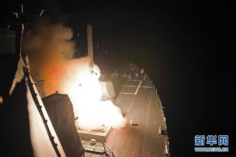 | Mit Kampfjets, Bombern und Tomahawk-Marschflugk?rpern führte das amerikanische Milit?r erstmals Luftangriffe auf Ziele der IS-Terroristen in Syrien durch. |