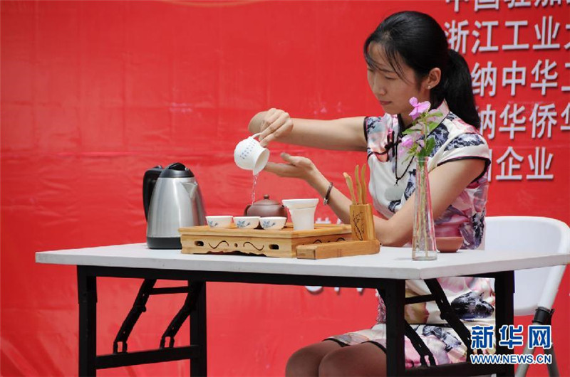 | In Accra pr?sentiert eine Chinesischlehrerin der Universit?t Ghana die traditionelle chinesische Teekunst. |