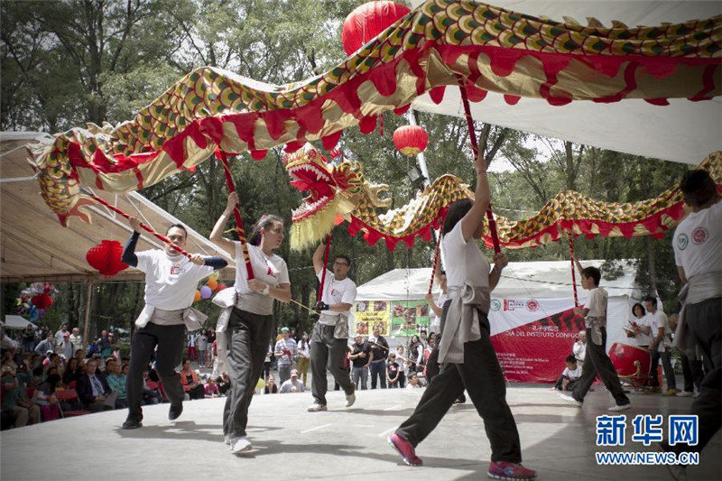 | In Mexiko-Stadt wird dem Publikum zur Feier des ersten globalen ?Tags des Konfuzius-Instituts“ ein Drachentanz gezeigt. |