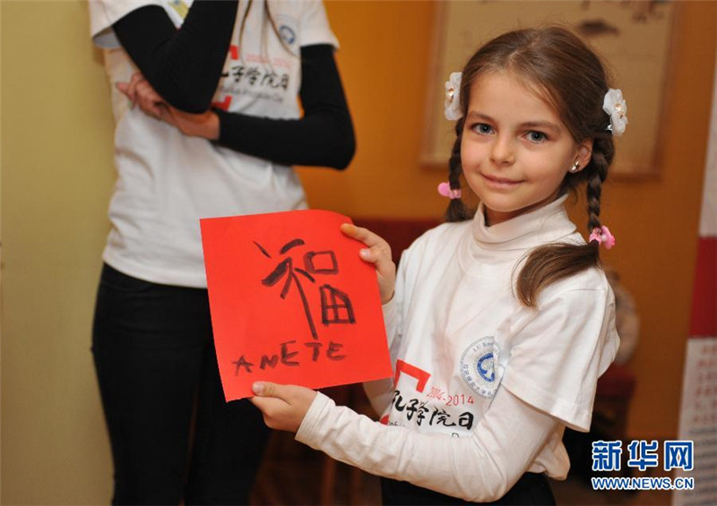 | In Lettland pr?sentiert ein M?dchen stolz sein kalligrafisches Werk. Im baltischen Land gibt es derzeit knapp 20 Institute zum Chinesischlernen. |
