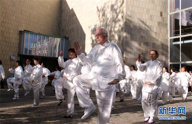 | In der d?nischen Hauptstadt Kopenhagen praktizieren Einheimische Taijiquan. |