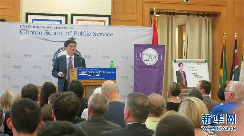 | In Houston h?lt Professor Tong Shijun von der East China Normal University eine Vorlesung zum Thema ?Pluralistische demokratische Ideale“. |