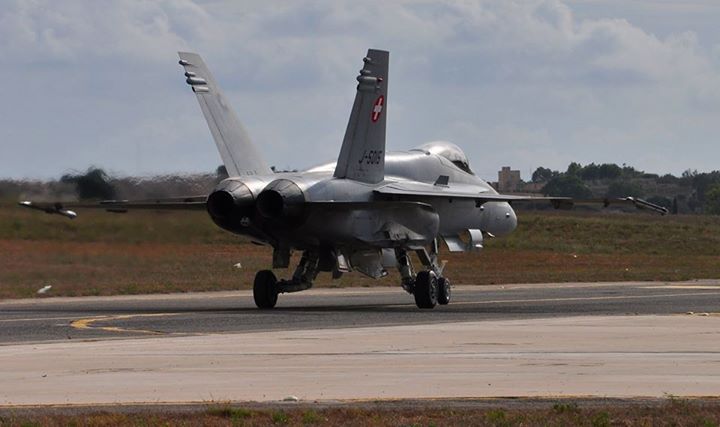 | Ein Kampfflugzeug F-18 aus der Schweiz |