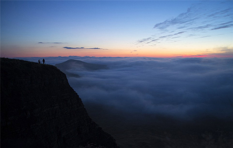 | Blick auf das Nebelmeer vom Gipfel eines Bergs im Derbyshire-Nationalpark. |
