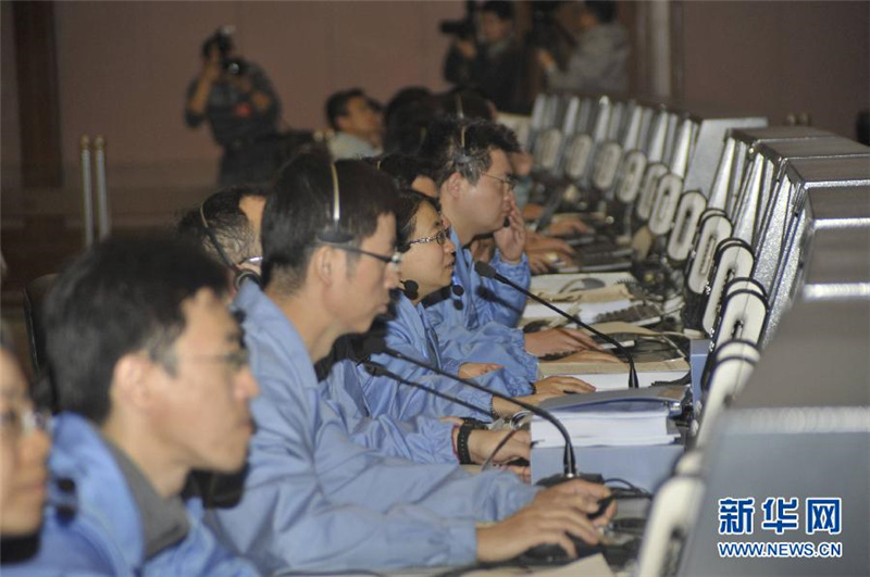| Die Mitarbeiter des Kontrollzentrums für Raumfahrt in Beijing überwachen den gesamten Prozess. |