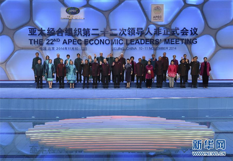 | Staatspr?sident Xi und seine Frau Peng lassen sich zusammen mit Teilnehmern des 22. APEC-Treffens vor dem Begrü?ungsbankett fotografieren. (Xinhua/Ju Peng) |