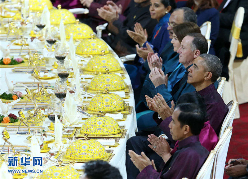 | Begrü?ungsbankett: So speisen die m?chtigsten Personen der Welt. (Xinhua/Pang Xinglei) |