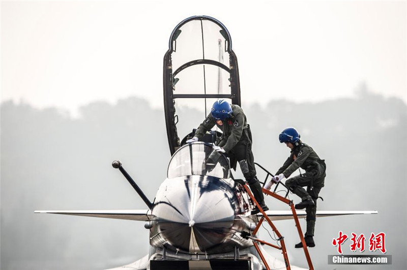 | Das Bild zeigt die ersten fünf Pilotinnen für Jagdflugzeuge, die ihr Debüt erstmals an der Flugschau in Zhuhai geben werden. Sie werden bei einer Flugshow die Kampfflugzeuge vom Typ J-10 steuern. |