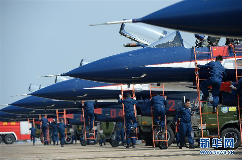 | Das Bayi-Kunstflugteam der chinesischen Luftwaffe beim Trainingsflug |