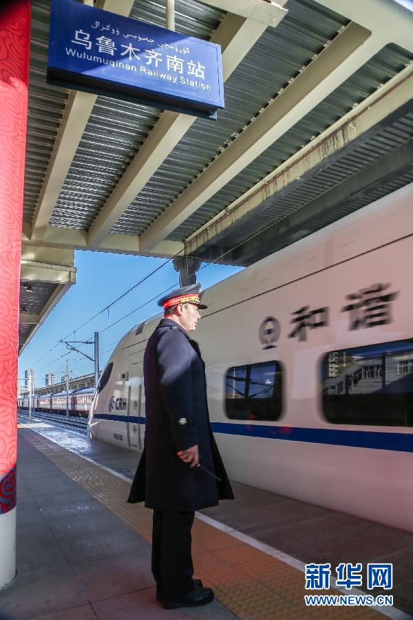 | Erstmals verl?sst Zug D8602 den Südbahnhof von Urumqi. |