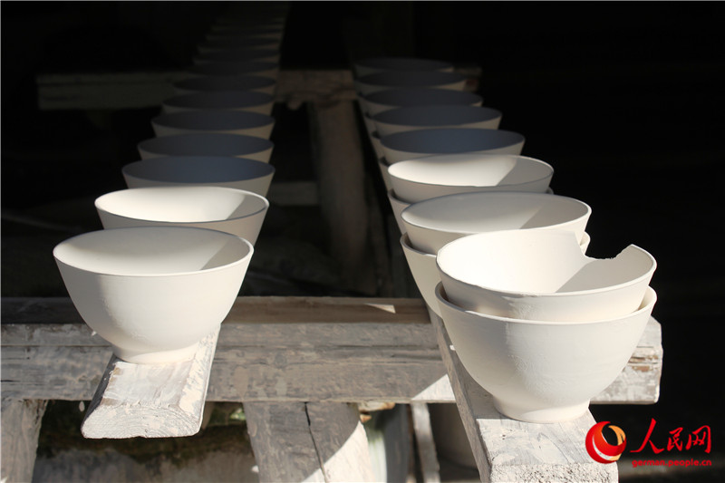 | Museum der alten Brenn?fen: Halbfertigte Porzellanschalen werden an der Sonne getrocknet. |