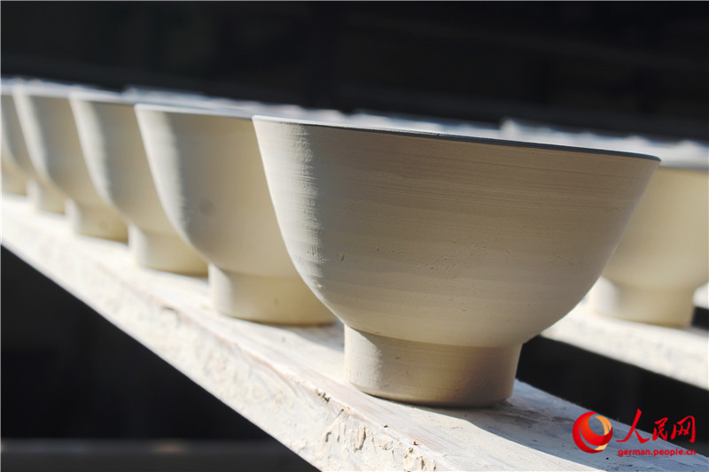 | Museum der alten Brenn?fen: Halbfertigte Porzellanschalen werden an der Sonne getrocknet. |