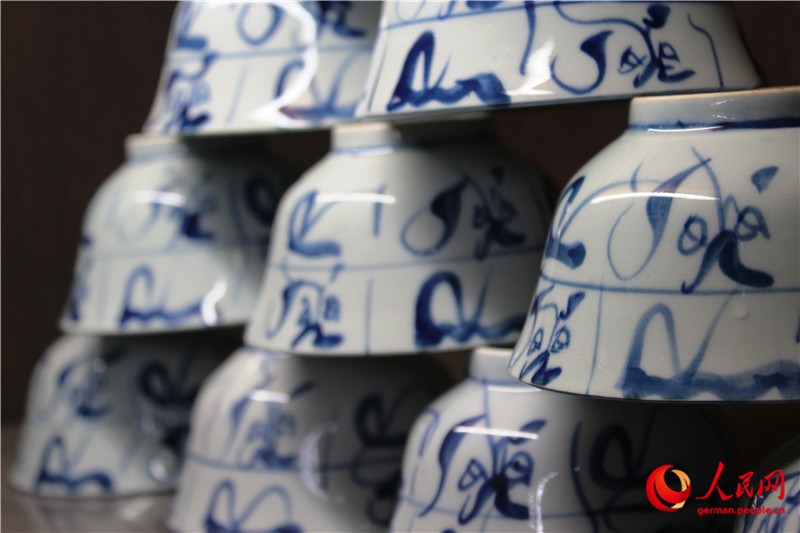 | Museum der alten Brenn?fen: Fertige Porzellanschalen mit Kamelien-Muster. |