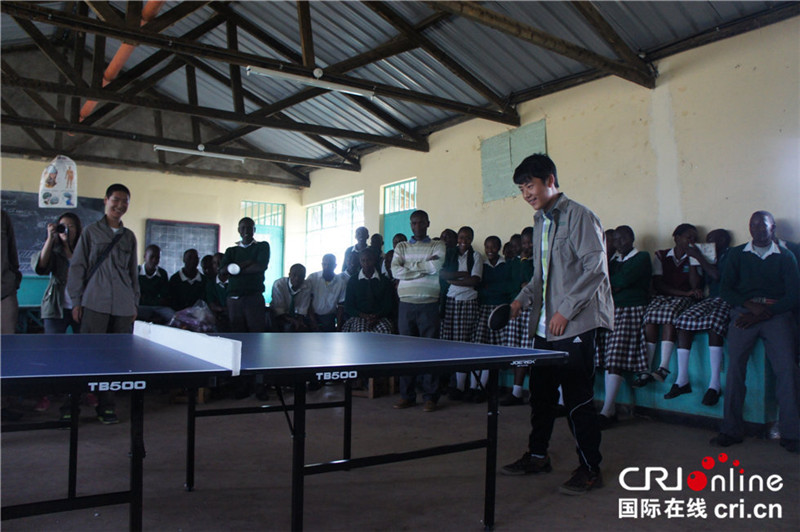 | Die Freiwilligen haben den einheimischen Kindern einen Pingpong-Tisch geschenkt und versuchen nun, ihnen diesen interessanten Sport beizubringen. |