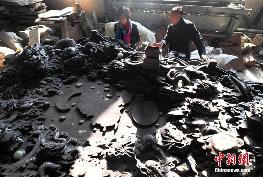 56 chinesische Drachen zieren riesigen Tuschstein (2)