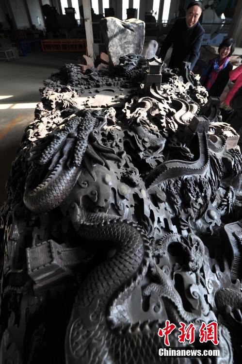 56 chinesische Drachen zieren riesigen Tuschstein (3)