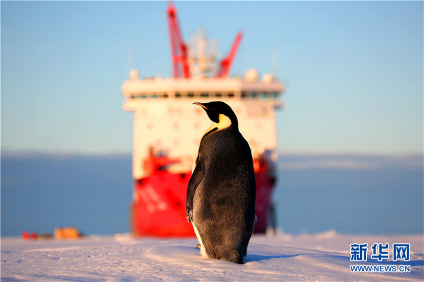 | Pinguine hei?en ?Schnee-Drachen“ willkommen (Foto: Bai Yang, Xinhua Nachrichtenagentur) |