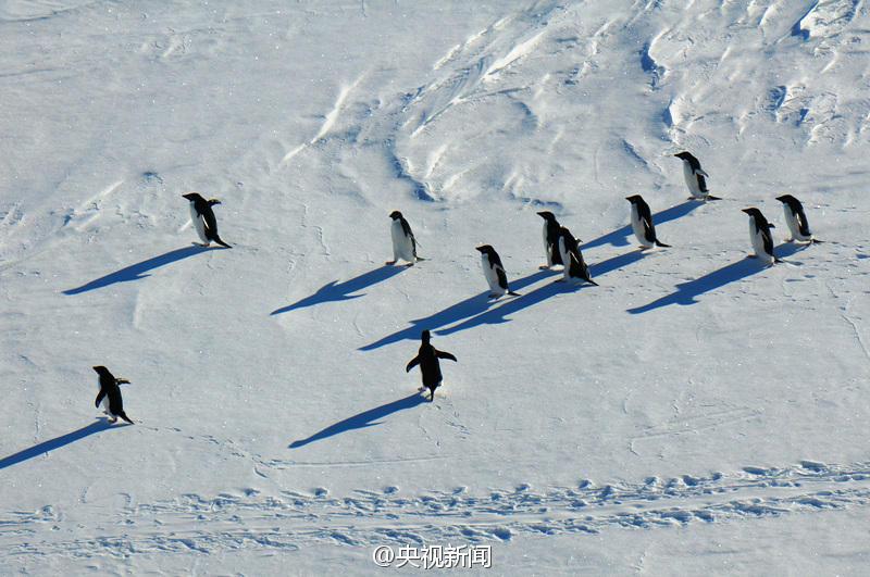 | Pinguine hei?en ?Schnee-Drachen“ willkommen (Fotoquelle: Sina-Mikroblogging von cctvxinwen) |