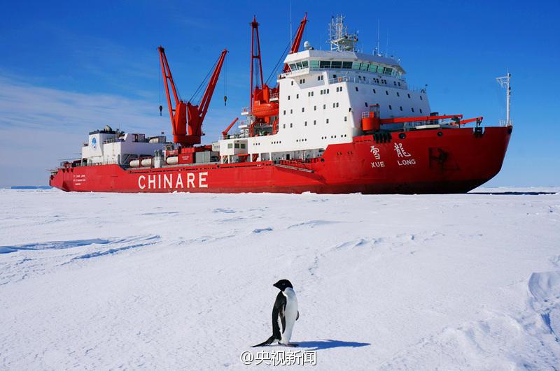 | Pinguine hei?en ?Schnee-Drachen“ willkommen (Fotoquelle: Sina-Mikroblogging von cctvxinwen) |