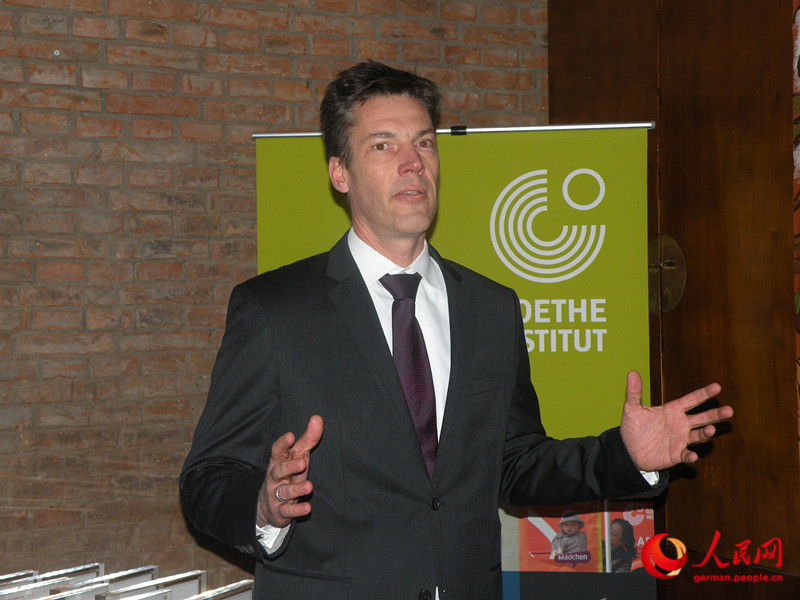 | Der Leiter des Kulturreferats der deutschen Botschaft Peking Enrico Brandt h?lt bei der Abschlusszeremonie eine kurze Rede. Dabei sagt er: ?Es bestehen gro?e Unterschiede zwischen Deutschland und China in vielen Bereichen, was den transkulturellen Austausch und die bilateralen Kooperationen herausfordernd macht. Das Programm ?Hu互?Tan探‘ bildete eine gute Plattform zur F?rderung der transkulturellen Zusammenarbeit.“ |