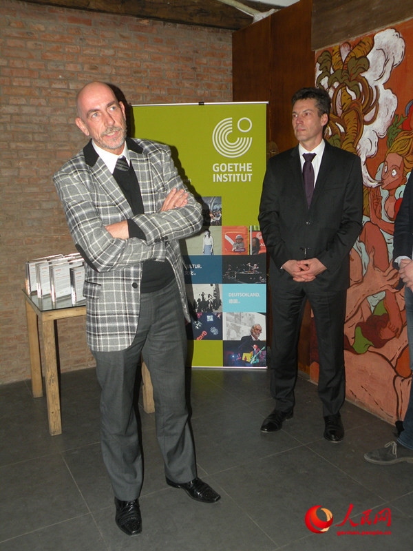 Der Leiter des Goethe-Instituts Peter Anders spricht bei der Abschlusszeremonie, dass er sich darüber sehr freue, dass die vier Tandempaare durch diese Gelegenheit ihre Kompetenzen zur L?sung der Probleme beim transkulturellen Austausch verst?rkt haben.