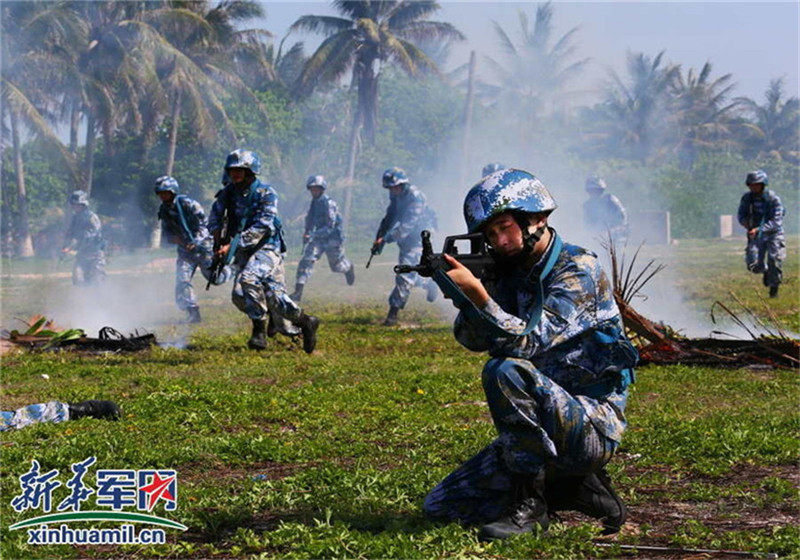 Soldaten bei einer milit?rischen übung auf der Insel Yongxin (Woody Island)