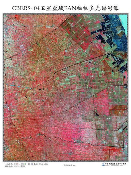 | Eine multispektrale Aufnahme der südostchinesischen Stadt Yancheng, aufgenommen mit der PAN-Kamera. |
