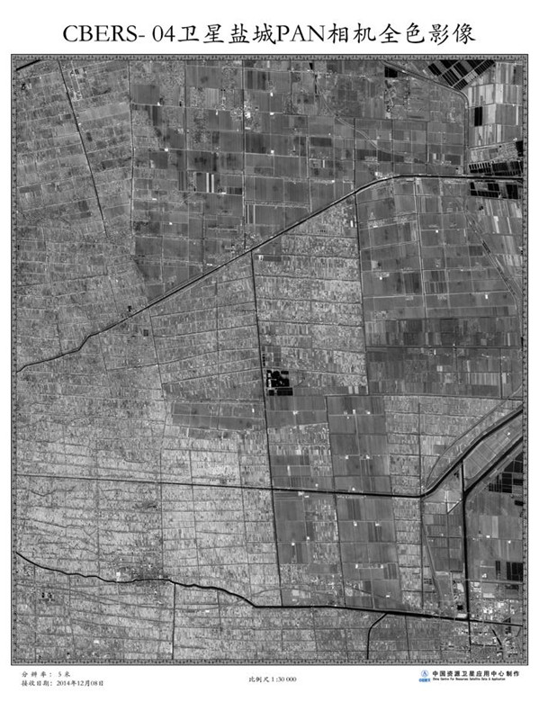 | Eine panchromatische Aufnahme von Yancheng, aufgenommen mit der PAN-Kamera. |