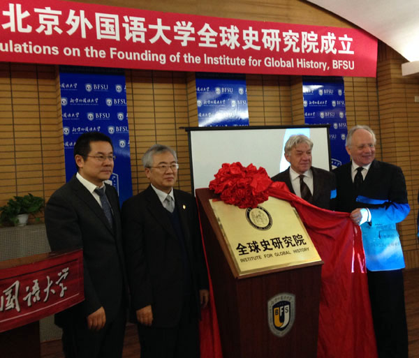 Die Er?ffnungszeremonie des "Institute for Global History" hat am Mittwochnachmittag in der BFSU stattgefunden. Universit?tspr?sident Peng Long begrü?te die zahlreich erschienenen G?ste. Professor Alfons Labisch von der Nationalen Akademie der Wissenschaften in Deutschland, Professor Ivan Ilchev, der Pr?sident der Universit?t Sofia in Bulgarien, der bekannte deutsche Sinologe und Professor der Rheinischen Friedrich-Wilhelms-Universit?t Bonn ,Wolfang Kubin, hielten anl?sslich der Gründung des Instituts eine Rede. Auch Richard Trappl, Leiter des Konfuzius-Instituts an der Universit?t Wien und Cord Ebersp?cher, Leiter des Konfuzius-Instituts in Düsseldorf sowie Cai Jianfeng, Leiter der Foreign Language Teaching and Research Press, ?u?erten ihre Glückwünsche zur Gründung des Instituts für Weltgeschichte.