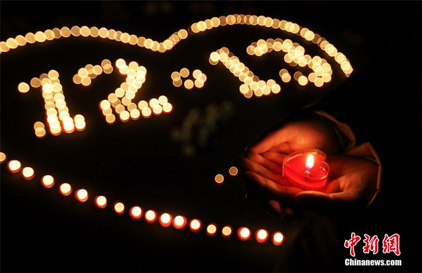 | Studenten in Nanjing gedenken mit Kerzen den Opfern des Nanjing-Massakers. |