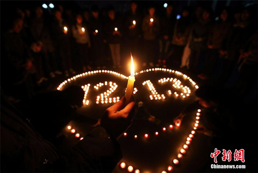 | Studenten in Nanjing gedenken mit Kerzen den Opfern des Nanjing-Massakers. |