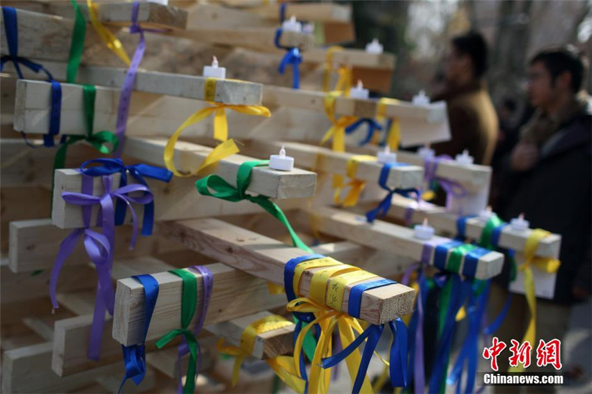 | Studenten in Nanjing gedenken den Opfern des Nanjing-Massakers. |