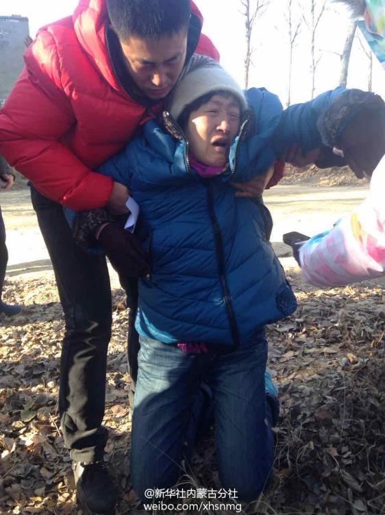 | Nach dem Erhalt des Wiederaufnahme-Urteils trauert Hugjiltus Mutter vor dem Friedhof um ihren Sohn. (Foto: Microblogging Sina der Nachrichtenagentur Xinhua, Büro der Inneren Mongolei) |