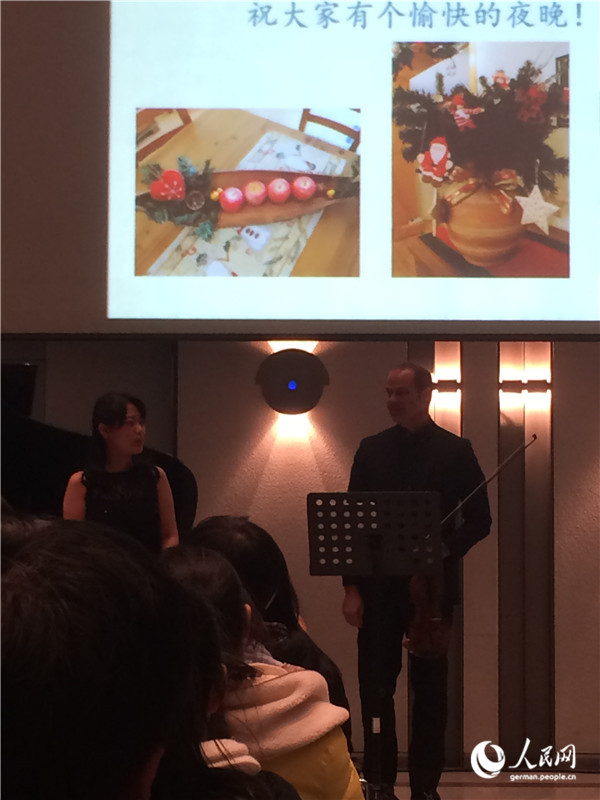 | Mathias Boegner und Chen Xiao halten einen Vortrag über die Stücke und vermitteln auch musikalisches Grundwissen. |