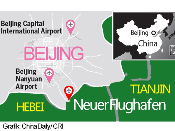 Der neue Flughafen soll den wachsenden Bedarf des Flugverkehrs in China decken und die Schere zwischen Beijings gedeihenden n?rdlichen Stadtteilen mit dem unterentwickelten Süden verkleinern.