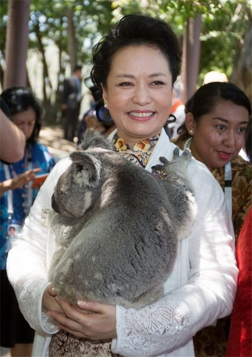 | Das Foto der First Lady Peng Liyuan mit einem Beutelb?r in Australien wird von den chinesischen Netizen als ?萌萌噠“ ausgezeichnet. |