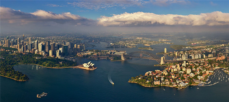 | Sydney. Auf dem Bild sind zwei berühmte Bauwerke zu sehen: das Sydney Opera House und die Harbour Bridge. |