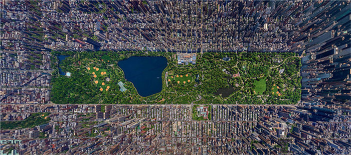 | New York. Die grüne Zone im Zentrum ist der Zentralpark, dessen Fl?che sogar gr??er ist als die Gesamtfl?che von Monaco. Um den Park stehen die Hochh?user dicht an dicht. Das ist der Bezirk im Stadtzentrum von New York, Manhattan. |