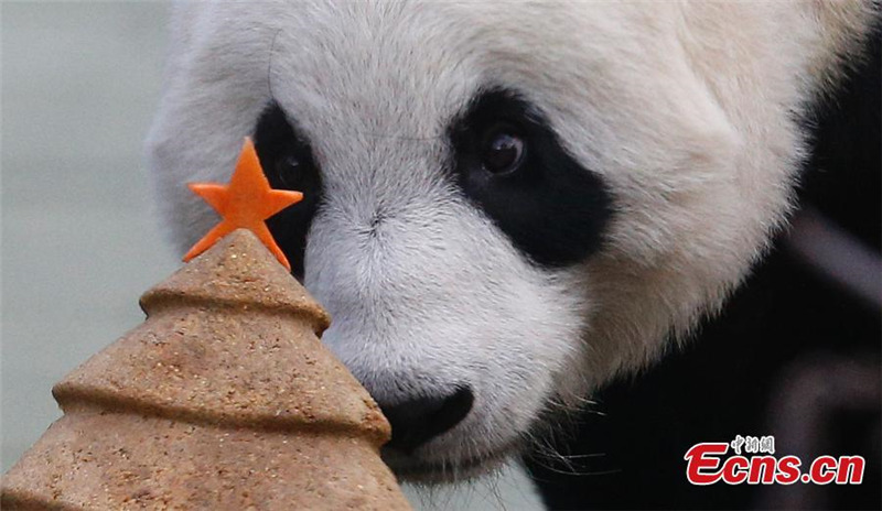 Riesenpanda in Edinburgh bekommt weihnachtliche Leckerei (3)