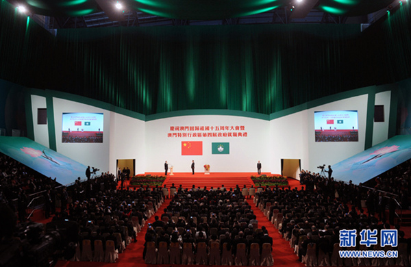 Die Feier zum 15-j?hrigen Jubil?um der Rückkehr Macaus zu China sowie die Vereidigungszeremonie der vierten Regierung Macaus haben am Samstag feierlich in der chinesischen Sonderverwaltungszone Macau stattgefunden. Der chinesische Staatspr?sident Xi Jinping wohnte der Zeremonie bei.