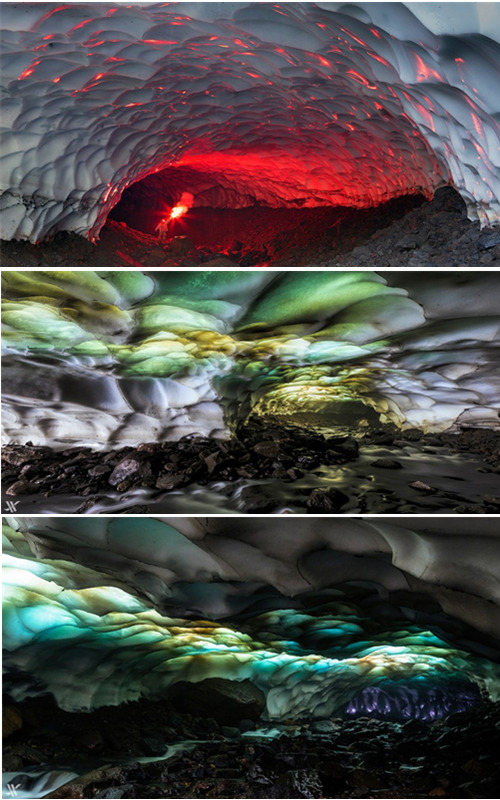 | Eish?hle in der N?he des Mutnovsky-Vulkans in Russland. |