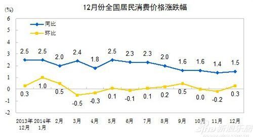 Chinas Verbraucherpreisindex (CPI) im Jahr 2014 ist den Statistiken des chinesischen Staatlichen Statistikamtes zufolge gegenüber dem Vorjahr um zwei Prozent gestiegen. Der Index bleibt damit weit unter der Inflationsgrenze von 3,5 Prozent.